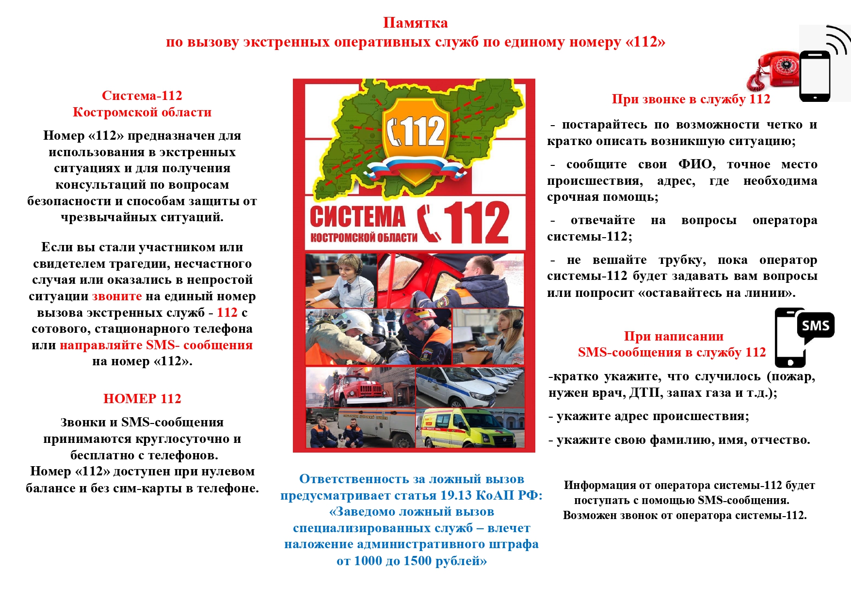 Памятка по вызову экстренных оперативных служб по единому номеру «112»